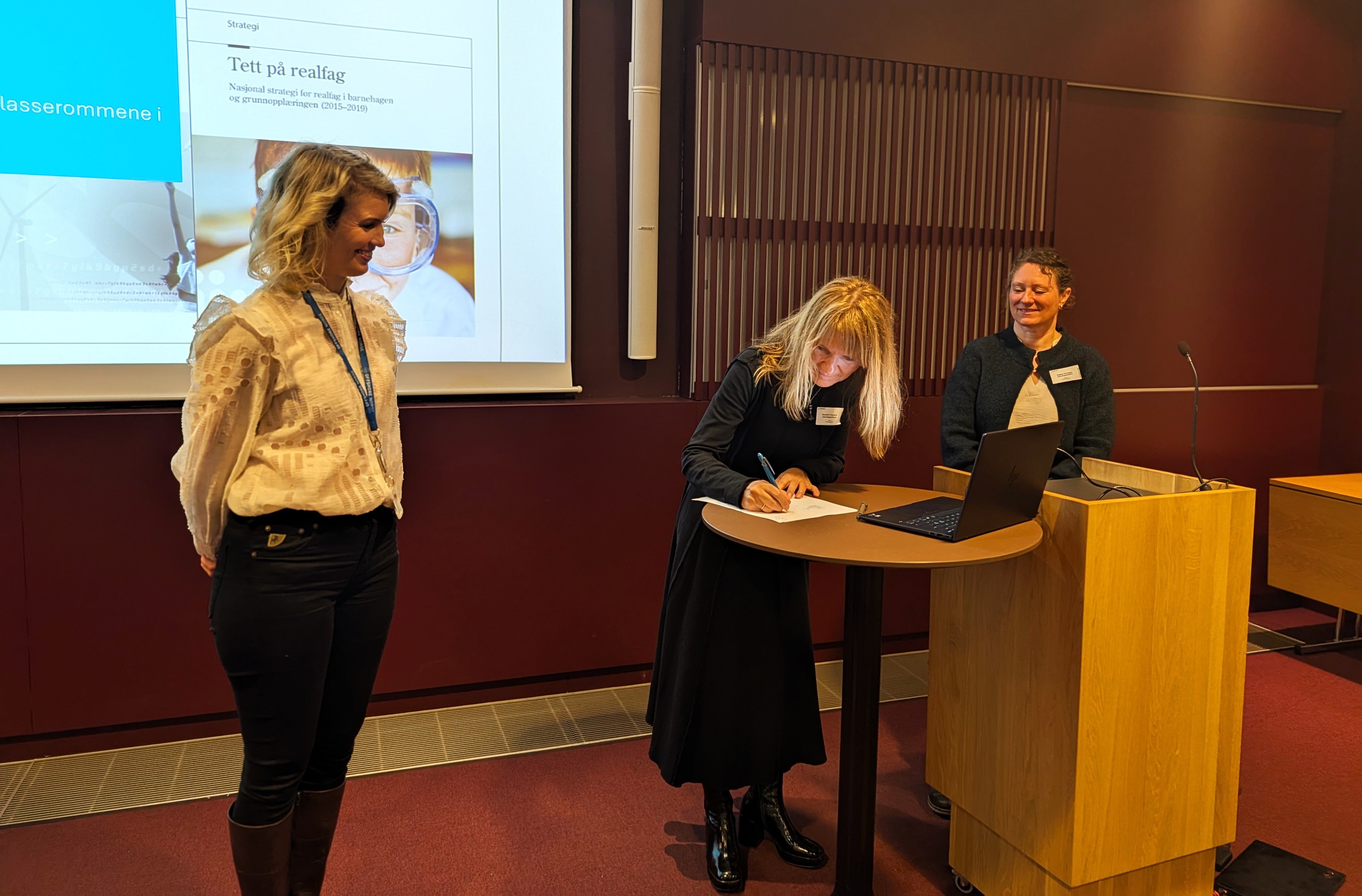 – I Norge har vi en realfagskrise som Offshore Norge vil bidra til å bedre. Derfor inngår vi dette samarbeidet med Naturfagsenteret, sier Elisabeth Brattebø Fenne, direktør arbeidsliv i Offshore Norge. Brattebø Fenne og Merethe Frøyland, leder i Naturfagsenteret , signerte avtalen i Næringslivets Hus.